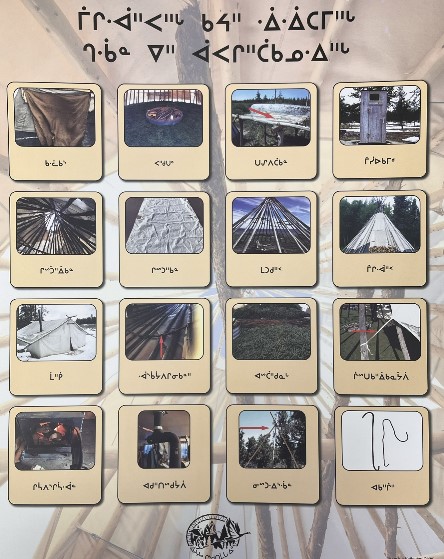 These posters have descriptions of an activity in each picture of moose hide preparation.